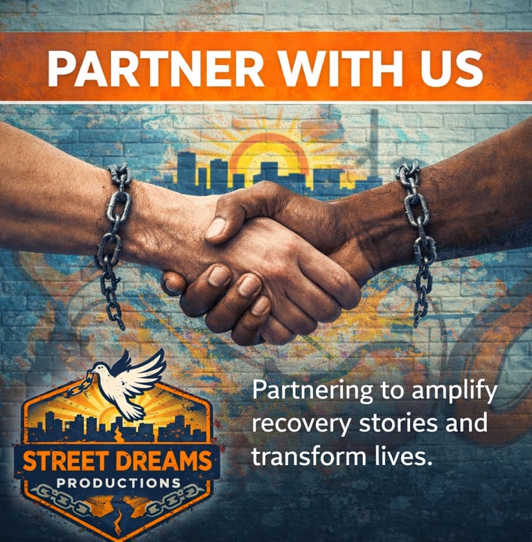 At Street Dreams Productions, our mission is to document and amplify real-life stories of struggle, recovery, and transformation through Christ-centered, reality-based storytelling. We exist to bring hope to the broken, give voice to the unheard, and honor the organizations and communities committed to restoration.