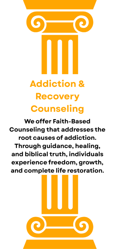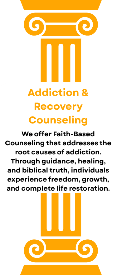 Our Addiction & Recovery Counseling pillar focuses on addressing the deeper roots of addiction through compassionate, Faith-based care. We believe true healing comes not only from breaking habits, but from restoring the heart, mind, and spirit.